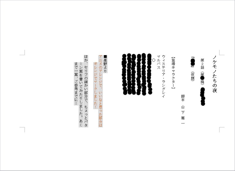 星野:青文字は意見で、オレンジは感想みたいな(笑)。これ、第1話だから結構長く書いていますね。