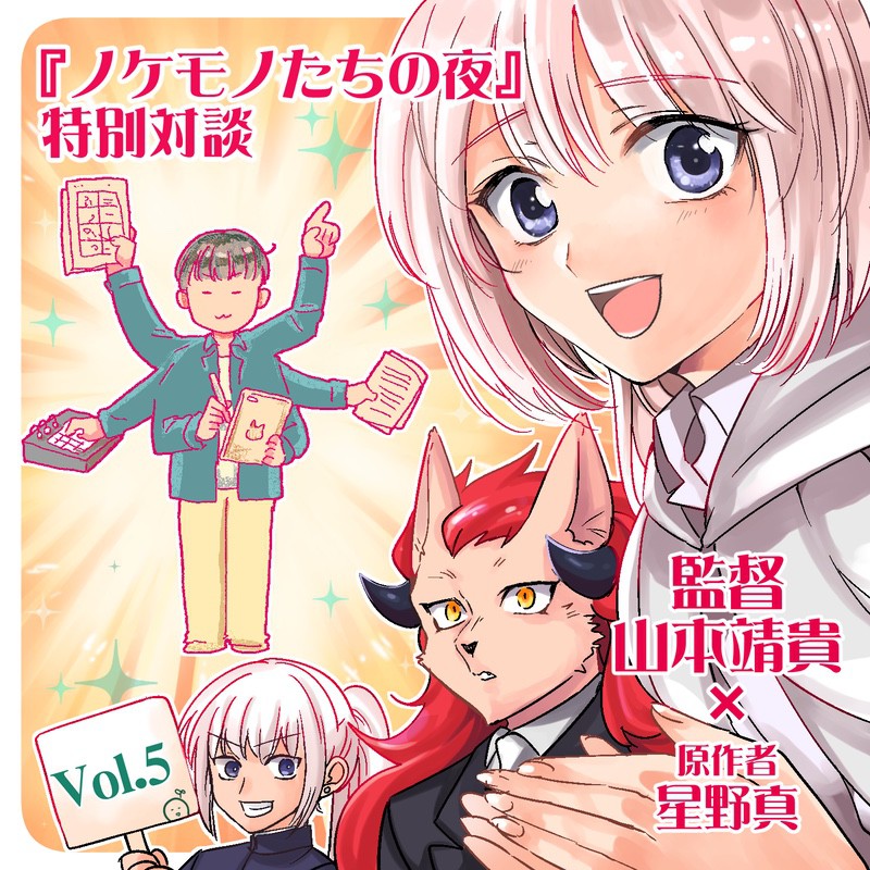 『ノケモノたちの夜』原作者の星野真先生と一緒にアニメ制作の裏側を探るインタビュー企画。第5弾は、監督の山本靖貴さん。原作漫画を預かり、アニメーションとしてさらに磨き上げていく思いを伺いました。(※少々ネタバレを含みます)